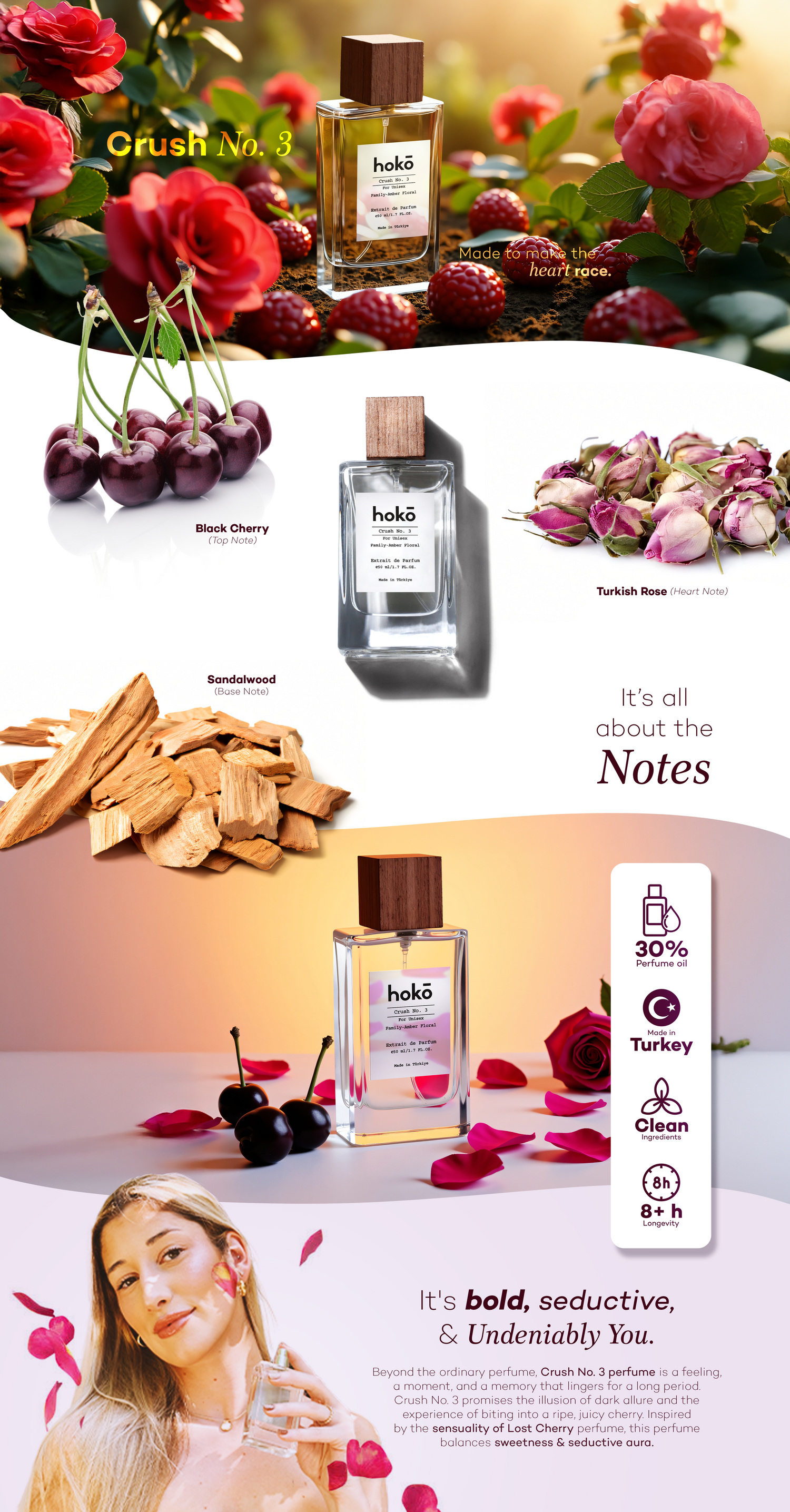 Middle : Sour Cherry, Plum, Turkish Rose and Jasmine Sambac